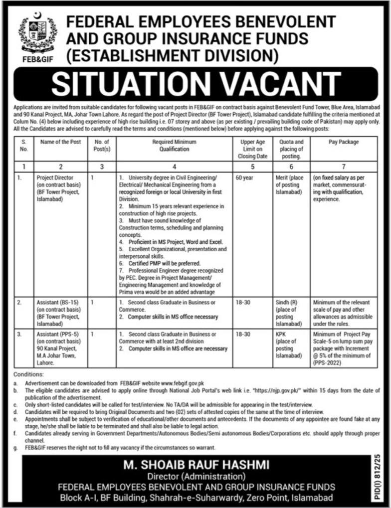 Establishment Division Islamabad Jobs Notice 2025